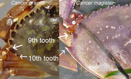 pattern, differs from all other west coast crabs with its 5 teeth on