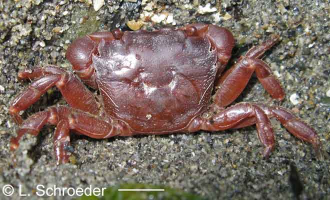 intertidal carapace to 33mm long