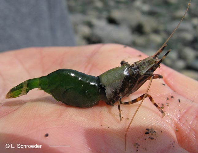 each side of carapace, so far has only isolated populations on west