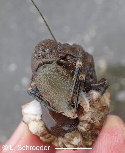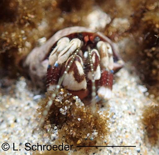 Discorsopagurus schmitti (Stevens, 1925)Tubeworm Hermitintertidal to 220m size to 7mm