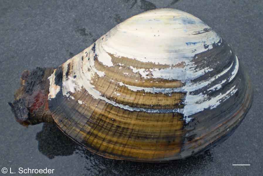 tide. It is sometimes mistaken for a geoduck. The clam may be buried