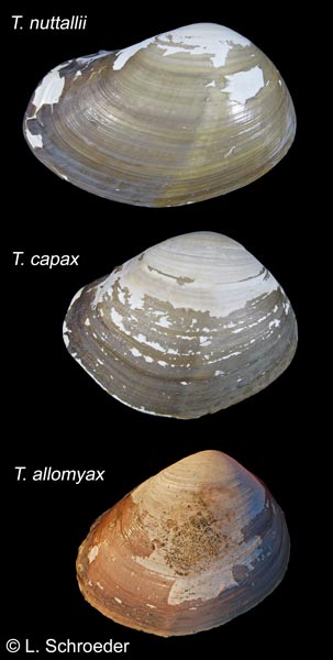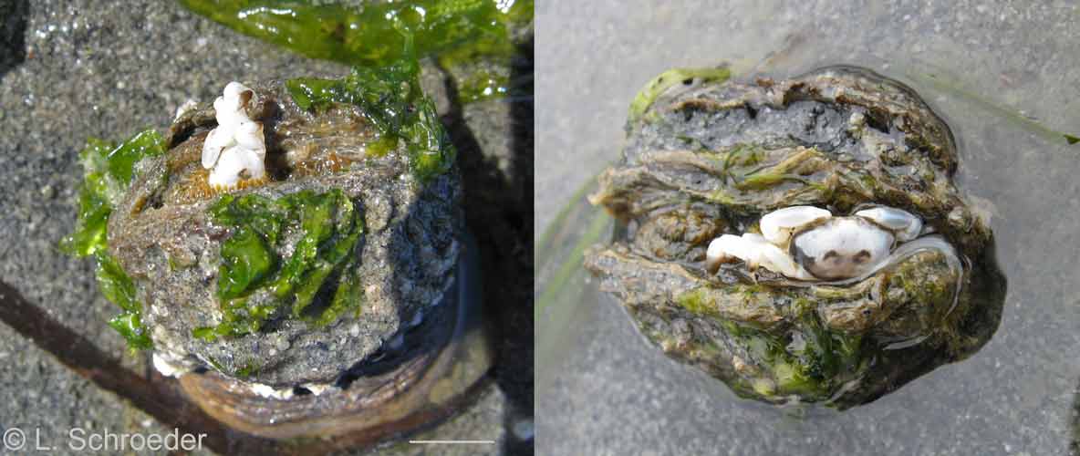 Pea crabs observed in the siphons of two different Tresus capax on the same day.