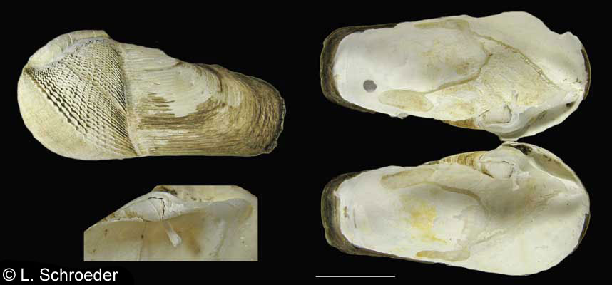 bores into soft rock. The siphon exhibits pustules which are