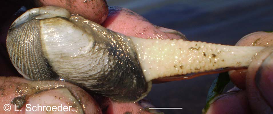 is more often found by sighting the siphons than finding the shells.