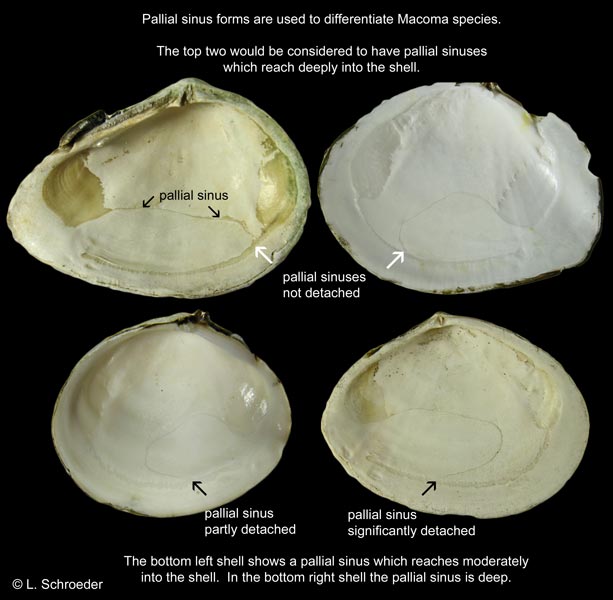 sinuses are deep and not detached in both valves. Recent studies show Macoma petalum