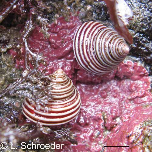 Young shells can easily be confused with Margarites pupillus, but this shell does not have an open umbilicus like the margarite. When the surface of the shell